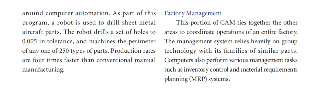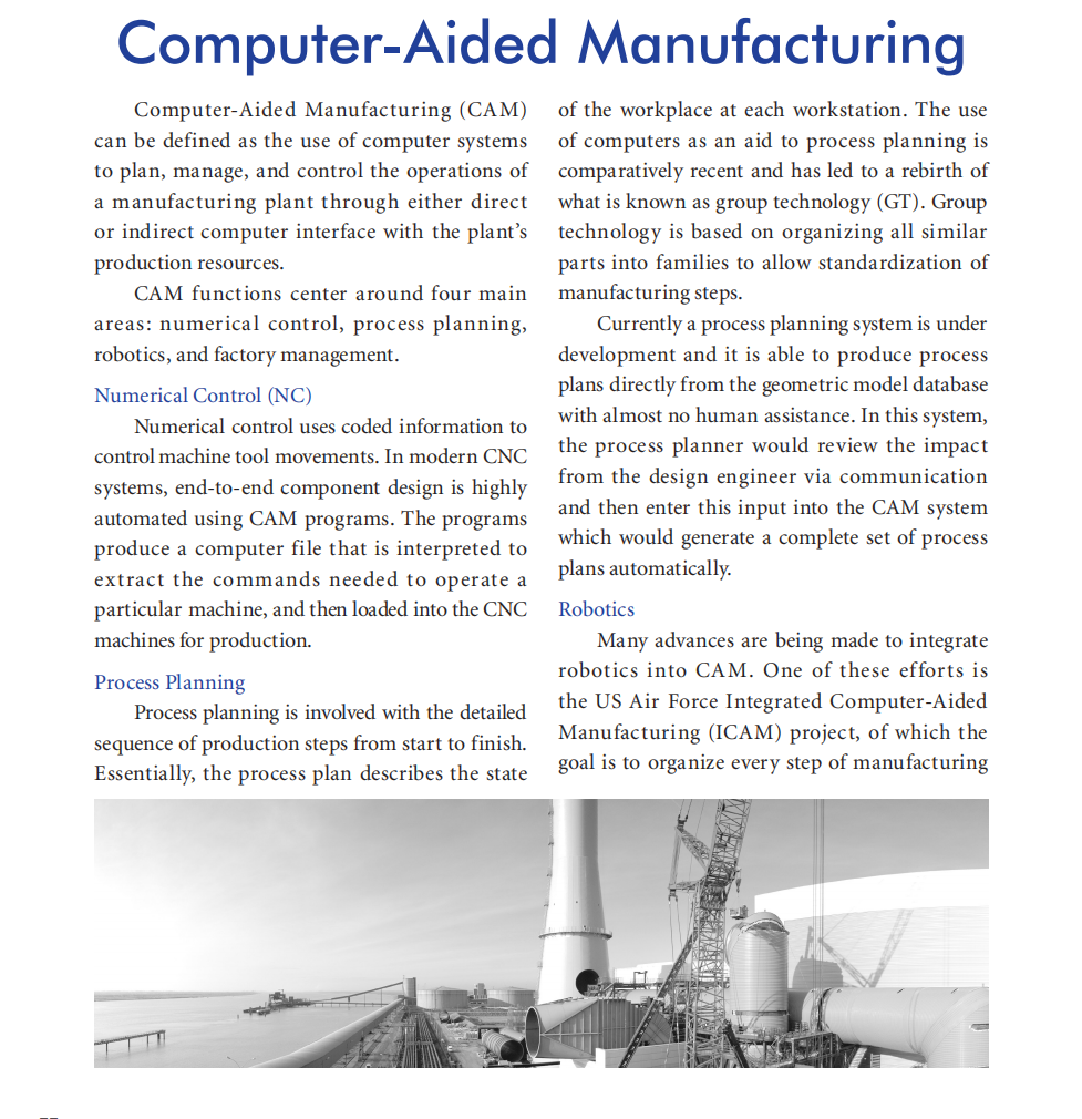 Discuss in groups. How is CAM applied in the operations of a manufacturing plant? What do you think the benefits of CAM are?