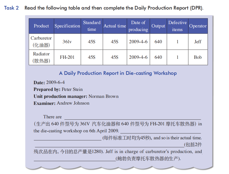 Mr. Clive from an American company is visiting Blue-sky Mold, accompanied by Andrew Johnson, the Production Manager. Listen to the conversation and fill in the blanks with what you hear.