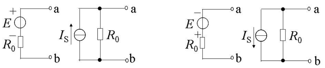 ② 等效变换时,两电源的参考方向要一一对应。也就是说:等效前后IS 的方向始