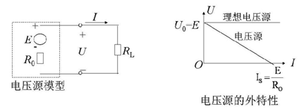 电压源是由电动势 E 和内阻 R0 串联的电源的电路模型,如图1(a)所示。