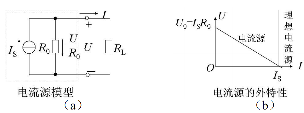 该式表明了电流源端电压和输出电流的关系,称为电流源的外特性,用曲线表示如图3(b)。