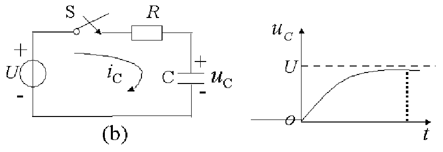 S 闭合后:电容充电,uC由零逐渐增加到U,所以电容电路存在瞬态