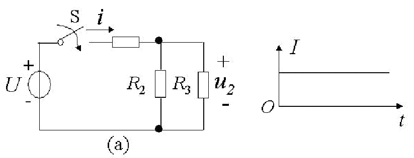 S 闭合前:i = 0 ,u2=0,S闭合后:根据欧姆定律,电流 i 随电压 u