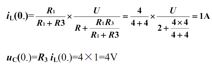 例2:换路前电路处于稳态,试求图示电路中各个电压和电流的初始值。