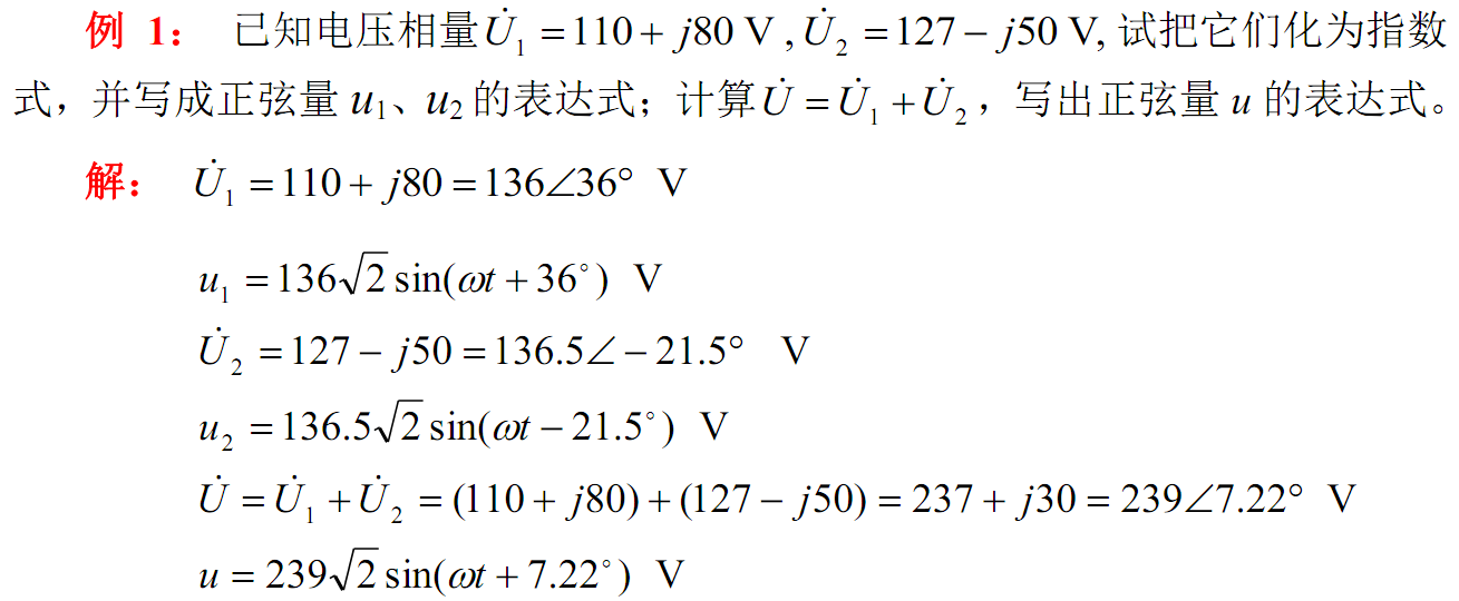 正弦量常用的相量表示方法之间的相互转换,相量图和相量式的相互转