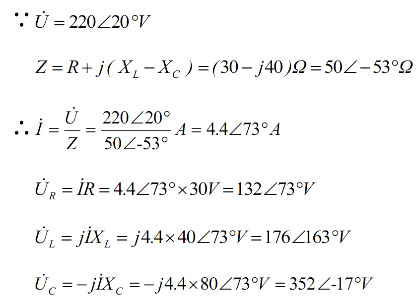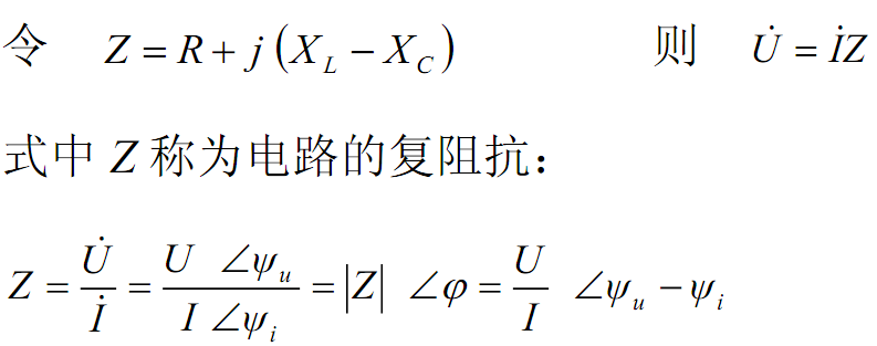 阻抗的概念及表示方法,电压与电流的相量关系式和相量图。