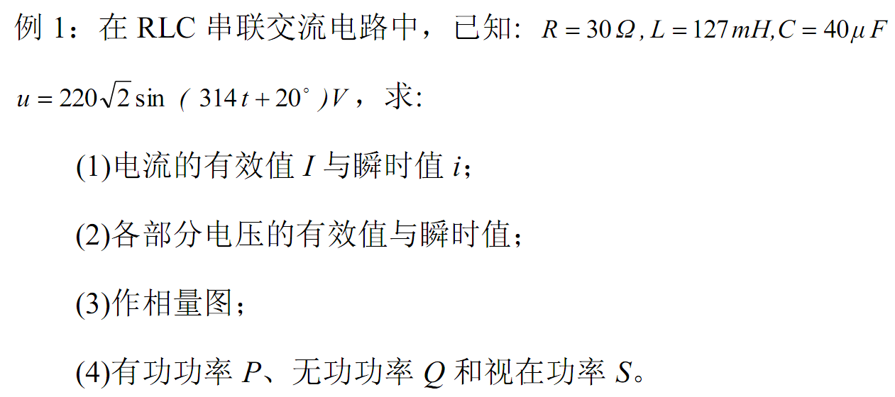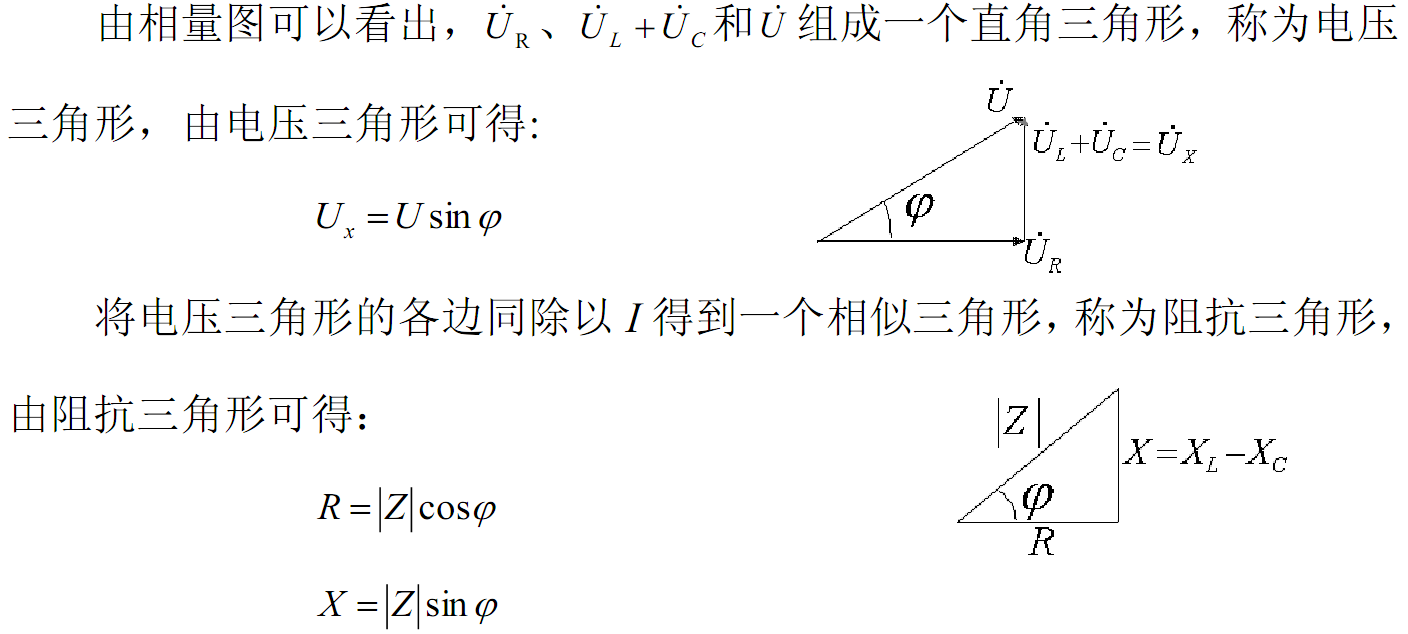 串联交流电路中阻抗的概念及表示方法;电压与电流之间的关系式;有功