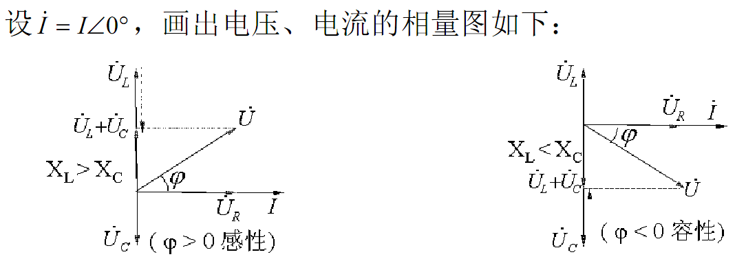 当 XL<XC时,j<0 ,u 滞后i ——电路呈电容性