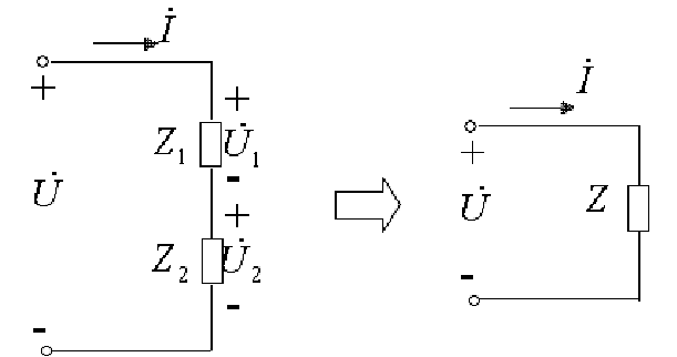 两个串联阻抗可用一个等效阻抗 Z 来等效代替。