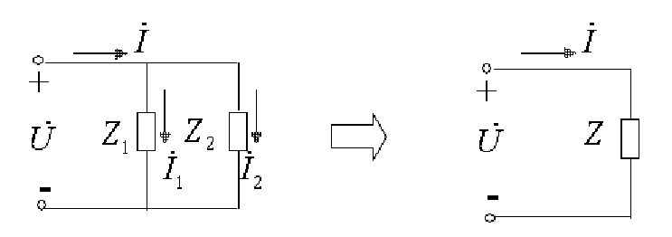 两个并联阻抗可用一个等效阻抗 Z 来等效代替。