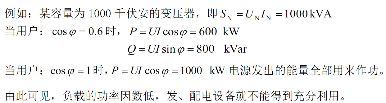 义。功率因数的提高,能使发电设备的容量得到充分利用,同时亦能节约