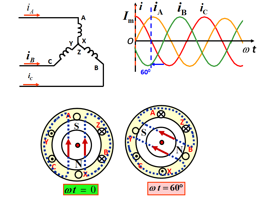 因此,旋转磁场的转动方向取决于三相交流电的相序。