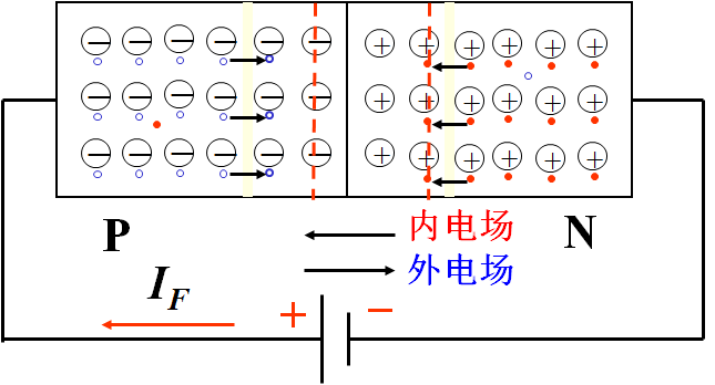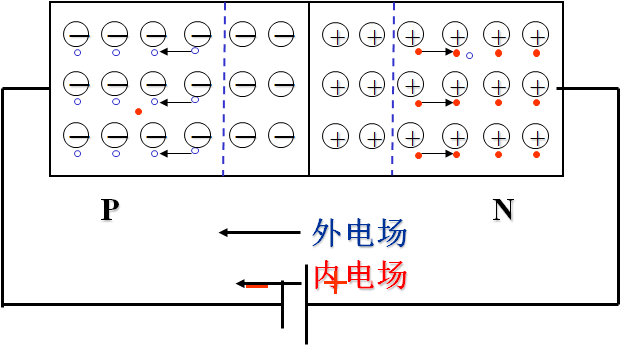 采取适当工艺将P形半导体和N形半导体紧密集合而形成PN结,PN结具有单向导电性,加正向电压(正偏)时PN结导通,加反向电压时(反偏)时PN结截止。