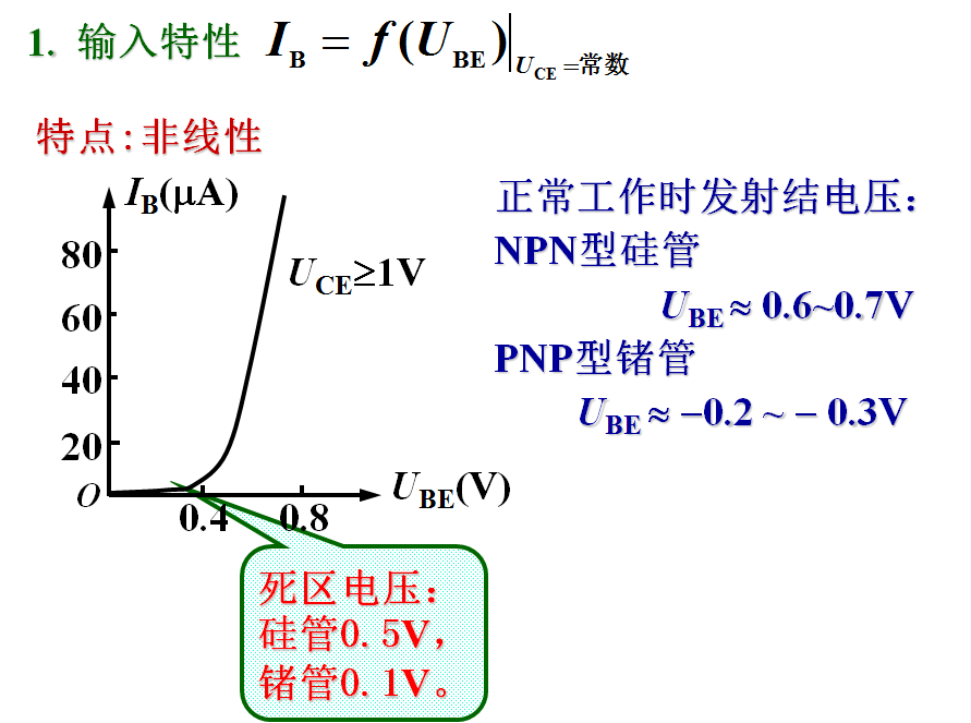 (1)集电极、发射极电压UCE等于电源电压,为截止状态;