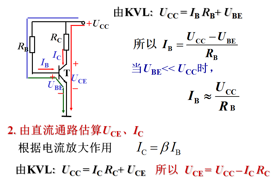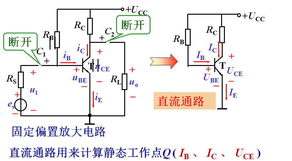 直流通路:无信号时电流(直流电流)的通路, 用来计算静态工作点。