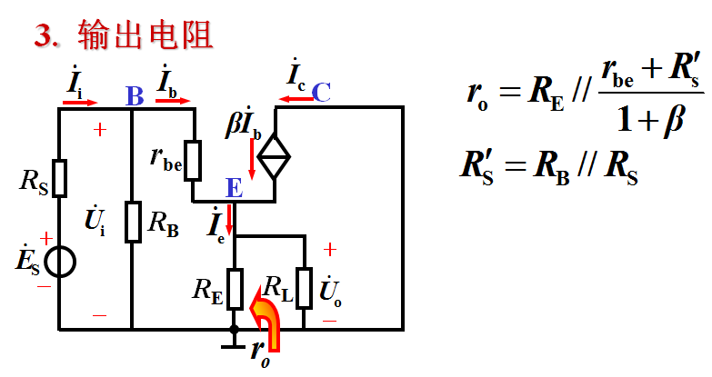 射极输出器的输入电阻高,对前级有利。 ri与负载有关