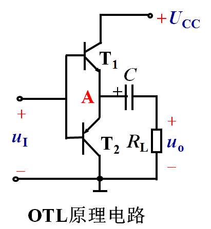 互补对称电路是集成功率放大电路输出级的基本形式。当它通过容量较大的电容与负载耦合时,由于省去了变压器而被称为无输出变压器(Output Transformerless)电路,简称OTL电路。若互补对称电路直接与负载相连,输出电容也省去,就成为无输出电容(Output Capacitorless)电路,简称OCL电路。