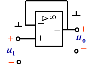 当RF=0或R1=∞时,uo=ui,电路称为同相器,又称跟随器,跟随器的电路如图所示:
