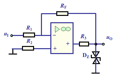 将两个稳压管反向串联,将输出电压限制在(UZ+UD)的范围内。UZ是稳压管的稳定电压,UD是它的正向电压降。