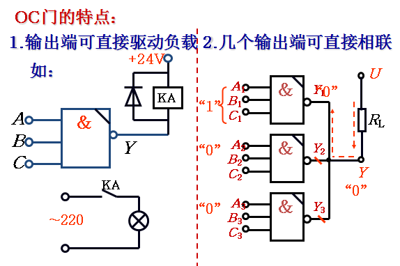 集电极开路与非门使用时在输出端和电源之前必须外接负载,具有“线与”功能。