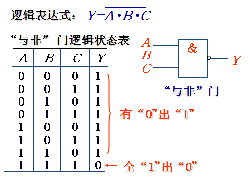 集成TTL与非门电路逻辑式、真值表和符号如图所示: