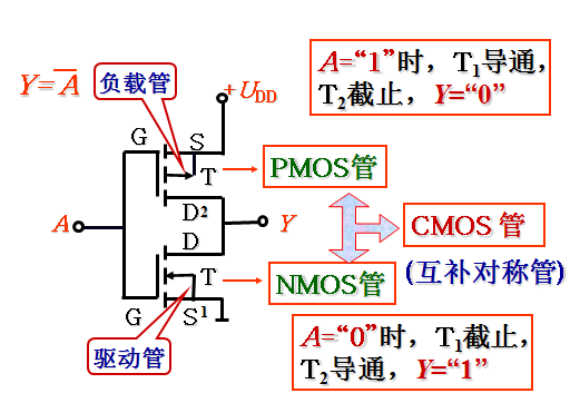 MOS门电路有NMOS门电路和CMOS门电路等,和TTL门电路一样,可以组成各种各样的逻辑门电路,电路符号与TTL门电路相同,和TTL门电路相比,有功耗小、集成度高等优点。