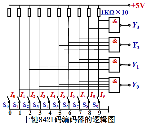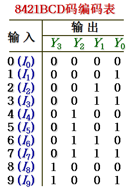 功能:对十进制数0~9的十个信号进行编码,输出对应的BCD码。