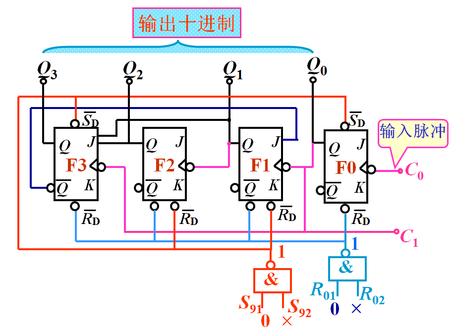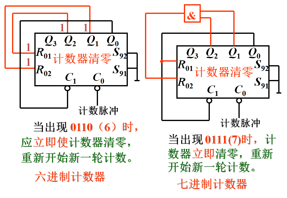 利用反馈置“0”法可用已有的计数器得出小于原进制的计数器。