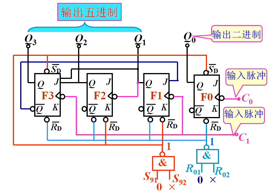 可以用中规模数字集成电路计数器芯片CT74LS290(T1290)组成二-五-十进制集成计数器。如图所示: