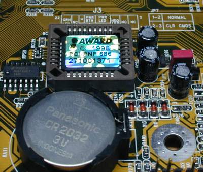 需要保护BIOS程序时,把主板上防BIOS写入的跳线开关拨至“OFF”位置,就可以有效地防止CIH病毒对BIOS程序进行非法修改。