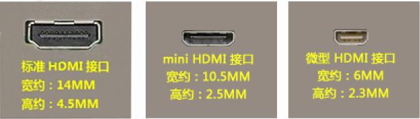 目前主流的HDMI接口有标准HDMI接口、迷你HDMI接口和微信HDMI接口三种,三种接口只是在体积上有区别,它们的功能是相同的。