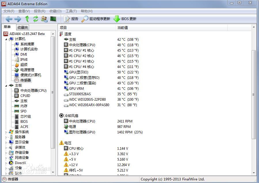 (1)AIDA64:前身是著名的EVEREST,是一款测试软硬件系统信息的工具,它可以详细显示出计算机系统每个方面的信息,不仅提供了协助超频、硬件侦错、压力测试和传感器监测等功能,而且还可以对处理器、系统内存和磁盘驱动器的性能进行全面评估。