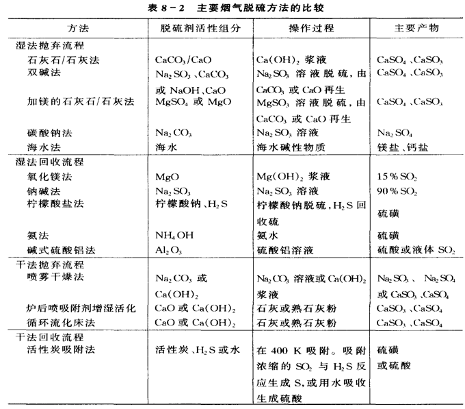 ① 干法脱硫:采用粉状或粒状吸收剂、吸附剂或催化剂;