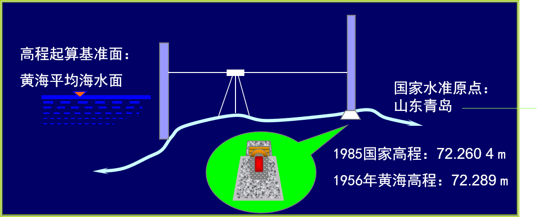 测量成果需借助一个与地球形状大小相似的、表面光滑的参考椭球面向外推算,原点的建立,就是解决参考椭球的定位、定向问题,即在领土范围内,使地球大地水准面与参考椭球体面基本吻合