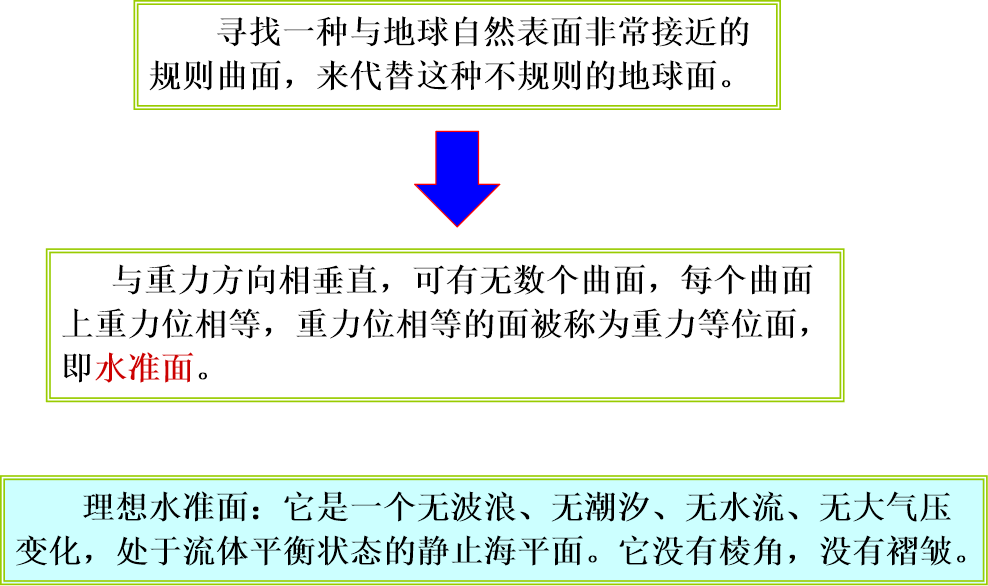 凸凹不平,形态极为复杂,难以成为测量与制图的基准面。应寻求一种与地球自然表面非常接近的规则曲面,来代替这种不规则的曲面