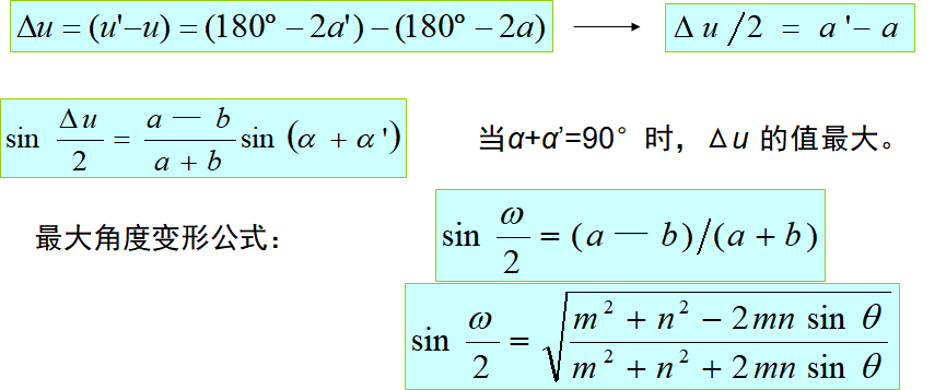 椭圆半径与小圆半径之比,可以说明长度变形。很明显的看出长度变形是随方向的变化而变化,在长短半径方向上有极大和极小长度比a和b,而长短半径方向之间,长度比μ,为b<μ<a。