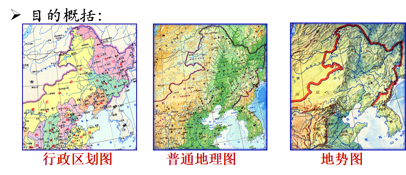 目的概括:选取符合制图目的某些内容,舍去与目的无关的某些内容或某项中的部分内容;选取反映地图区域特征的某些内容,舍去不反映区域特征的某些内容,有利于地图使用和区域特征的显示。强调地理适应性的典型塑造。