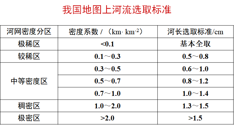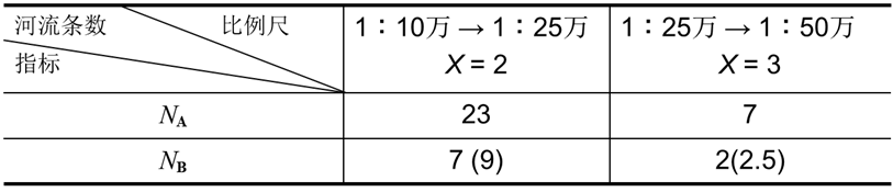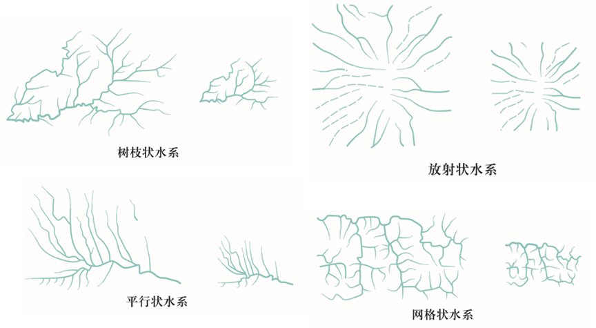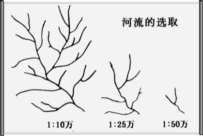 为了正确反映水系的结构特征,如树枝状水系、格网状水系选取河流的数量要比平行状水系、放射状水系多。