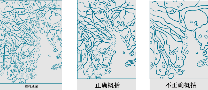 在简化过程中应保持一定的格局。例如在城市平面图形中,要考虑城市的功能分区、城市街区的方向、街道的密度对比、对外的交通联系等进行平面图形的概括。