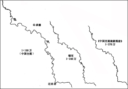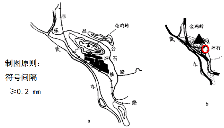 为保持地理要素基本特征,必须对一些弯曲进行局部夸大。