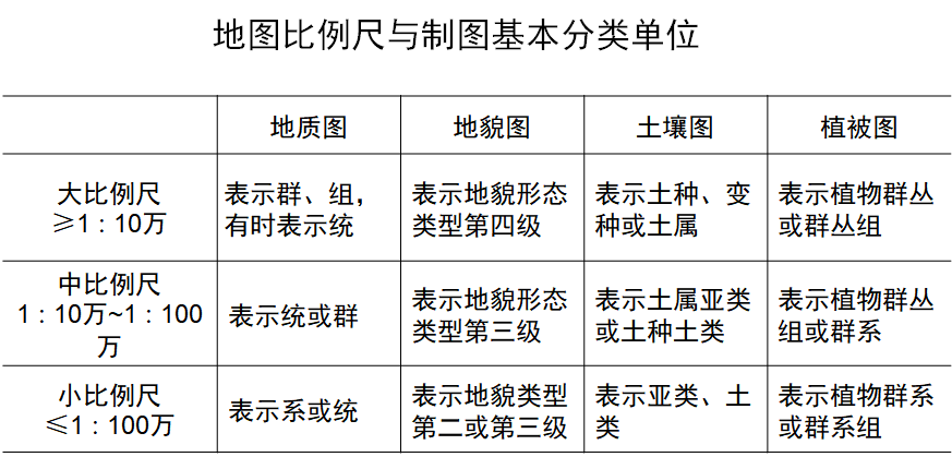 地理信息表示为数量特征的分类,常依比例尺可表达的程度进行。