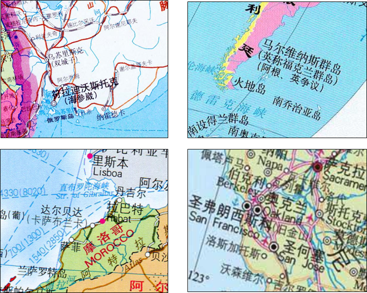 3.当争议地域双方名称不同时,按我国外交政策处理,只译一个名称或均译。