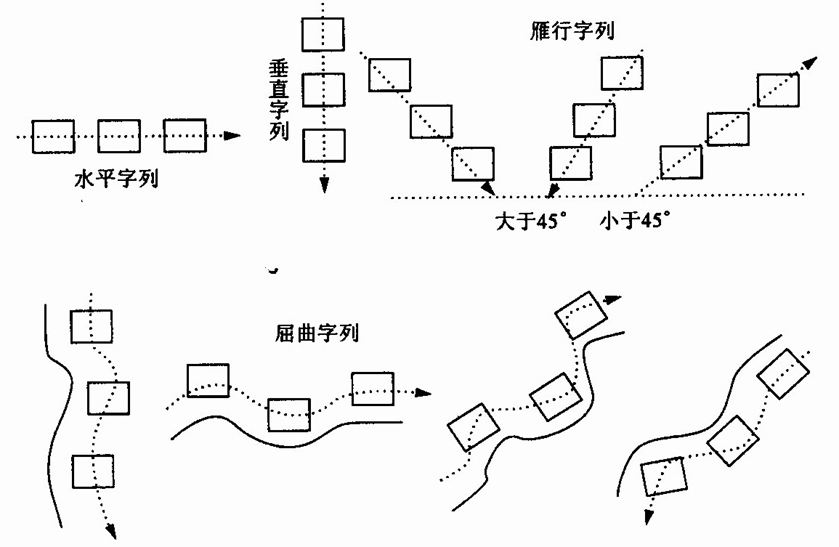 注记排列:水平排列、垂直排列、雁行排列、 屈曲排列