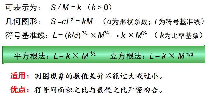 连续比率方式:使图中每个符号的大小都与其代表的实际数值按比率一一对应。