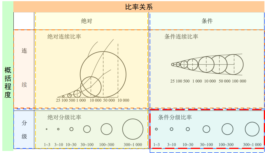 量表等级系统反映了属性信息从定性到定量变化过程,由此产生不同视觉变量的组合方案。