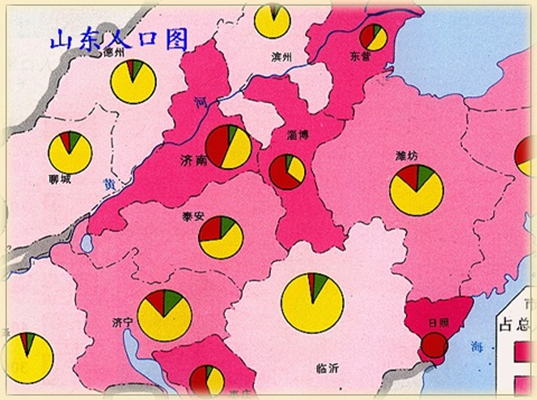 点值法应用于多项数据制图时,各项数据可采用不同色相的圆点来表示,圆点的直径也可以有变化。
