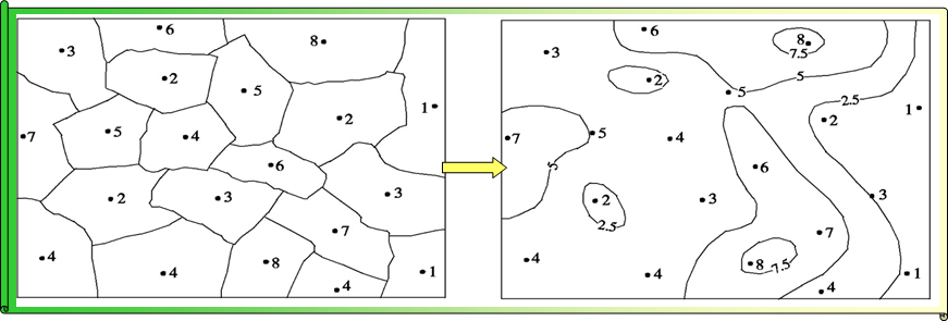 1、通过离散点内插成连续、封闭的、线状符号的表面。