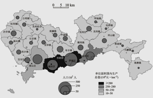 地图上居民点人口数量常通过圆形符号大小加以区别。