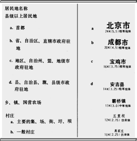 小比例尺地图:除大城市可能用概括了的平面图形表示外,通常都用各种圈形符号表示其点位。