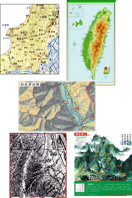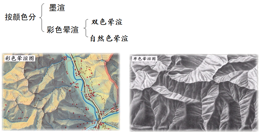 也称阴影法,是依据光照产生明暗变化的原理,用深浅不同色调表示地形形态。